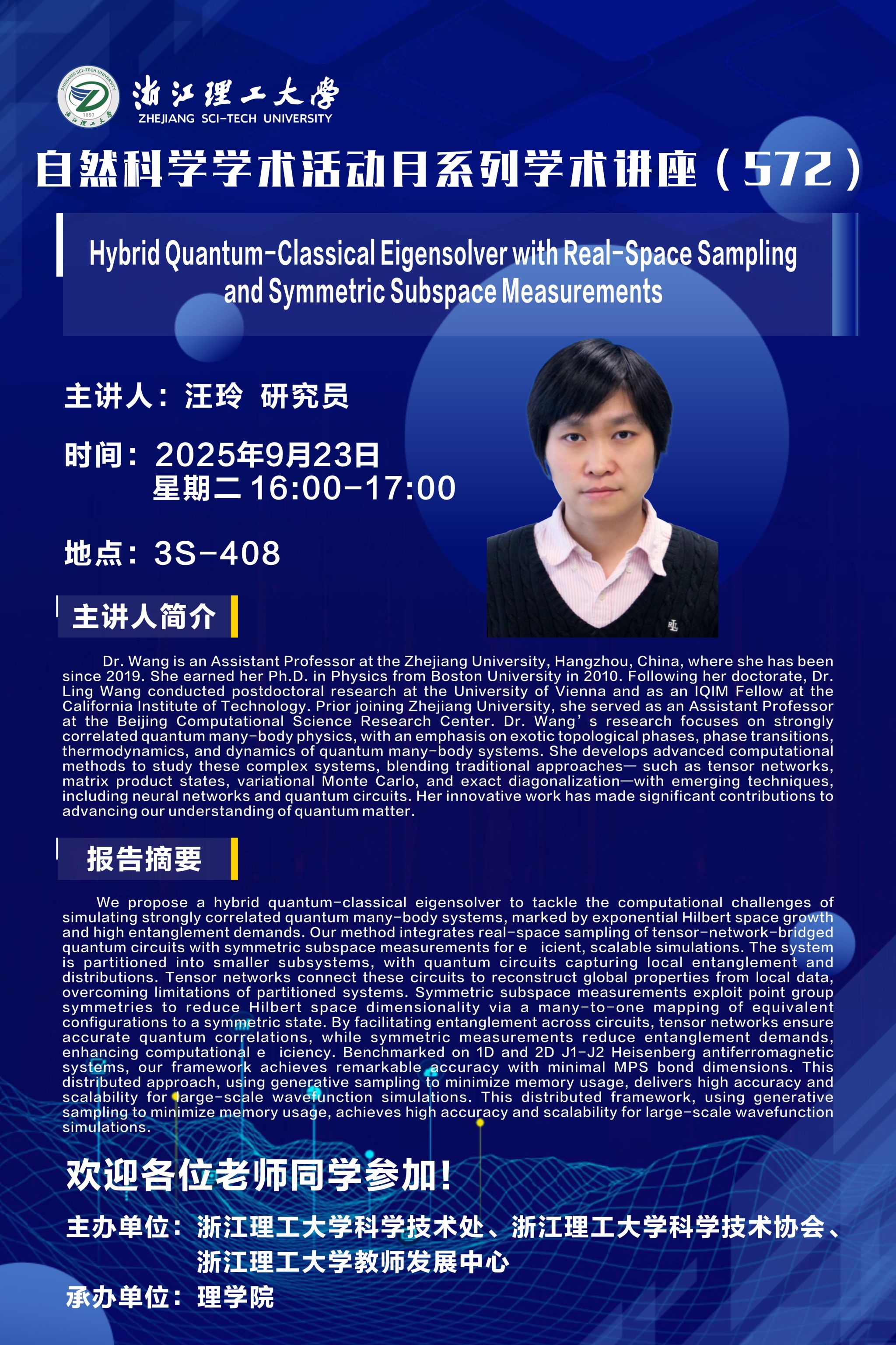 学术报告:Hybrid Quantum-Classical Eigensolver with Real-Space Sampling and Symmetric Subspace Measurements